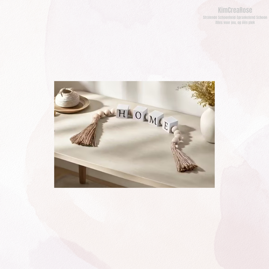 Houten Kralenkrans met Kwasten => Family • Love • Home