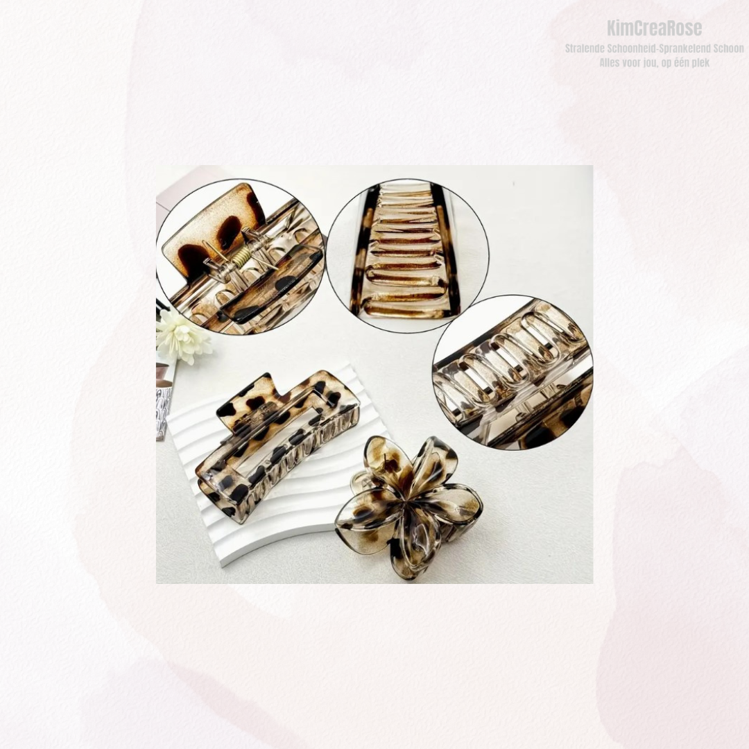 🌿 Stijlvolle Luipaardprint Haarspelden – Bloem (8,5 cm) & Langwerpig (10 cm) 🐆✨