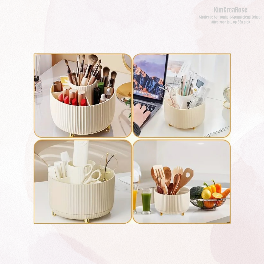 Wil jij je make-up, verzorgingsproducten, pennen, of nog veel meer netjes en overzichtelijk houden? Met deze draaibare organizer heb je alles binnen handbereik! 💄🔄