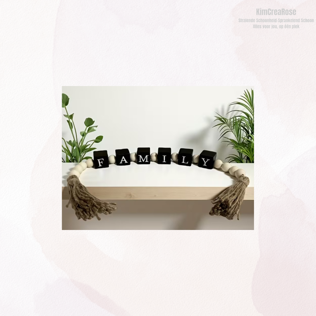 Deze decoratieve kralenkrans is niet alleen een sfeermaker, maar ook een subtiele reminder van wat écht belangrijk is. Ideaal als housewarmingcadeau, Moederdagcadeau of als finishing touch in je eigen interieur.