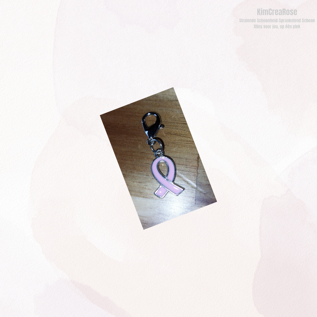 Elke sleutelhanger en balpen is voorzien van het herkenbare roze lintje , het symbool van hoepel, steun en ondersteund💗