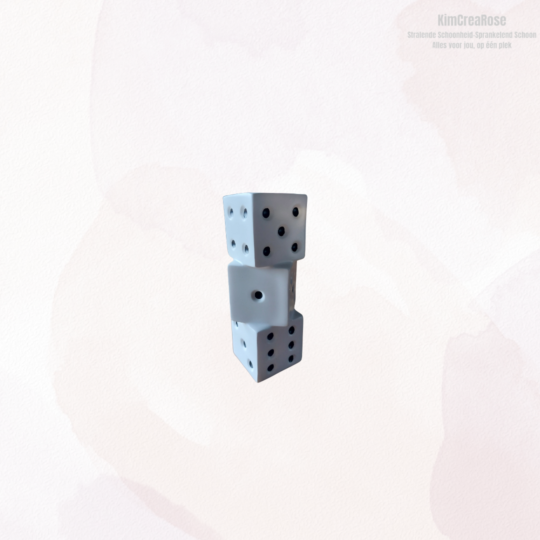 Deze bijzondere vaas is een echte eyecatcher. Het speelse ontwerp, opgebouwd uit gestapelde dobbelsteenachtige vormen, geeft de vaas een modern en artistiek karakter. De zachte, lichte kleur in combinatie met de zwarte details zorgt voor een strak maar toch speels contrast.